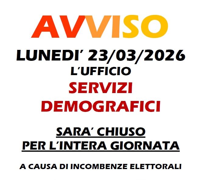 Si avvisa che in data sabato 14/03/2026 l'ufficio di Polizia Locale sarà chiuso al pubblico per ragioni di servizio. Ci scusiamo del disagio.